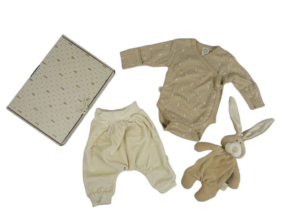 Nagy ajándék szett – body, nadrág, nyuszi Ecru/Brown