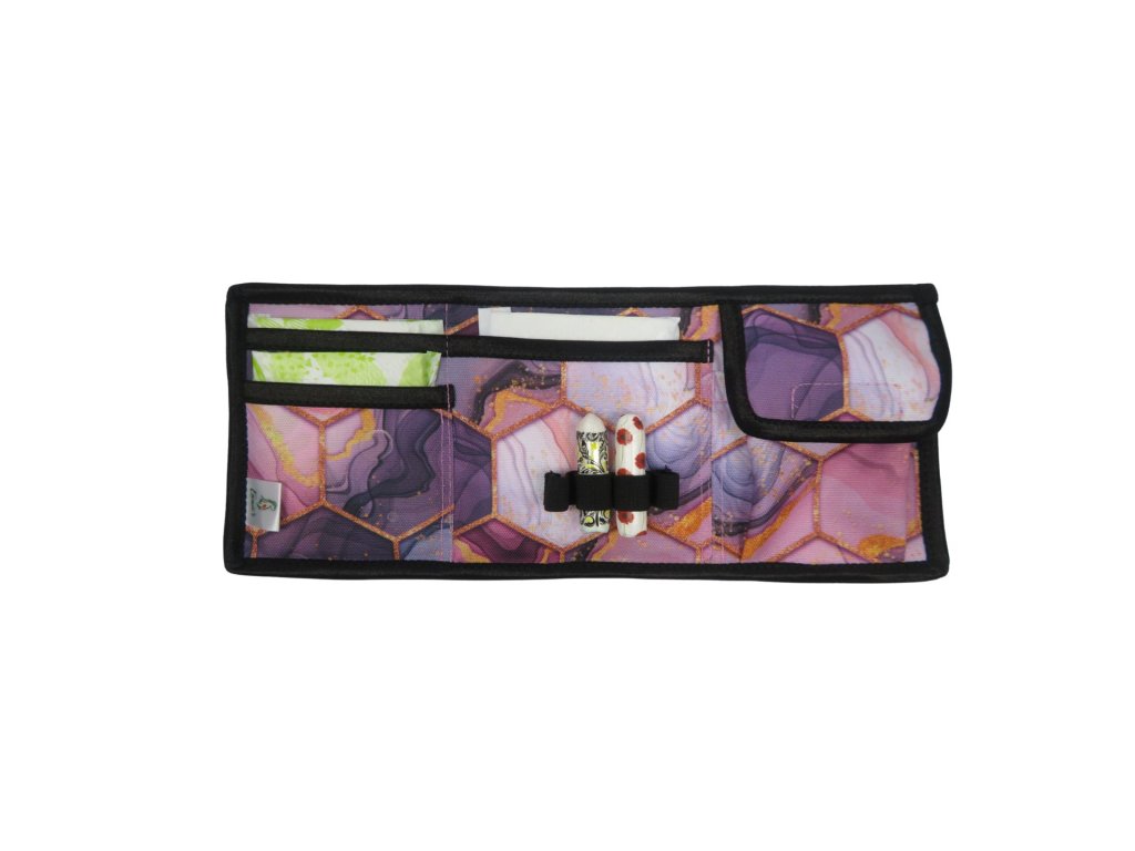 Három praktikus zseb, négy rugalmas tampon tartó, egy zárható tépőzáras zseb.
